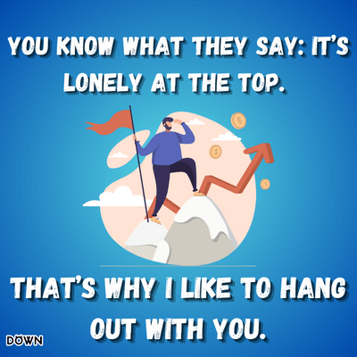 - You know what they say: It’s lonely at the top. That’s why I like to hang out with you.